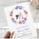 An invitation for your baby shower that evokes the peace and tranquillity of winter! The stork is surrounded by a wreath of blue and red peonies. Matching items available.