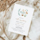 Celebrate the parents-to-be with this cute gender neutral nesting party invitation featuring a watercolor illustration of baby’s first outfit and vintage toys surrounded by eucalyptus leaves and a matching pattern on the back.