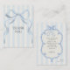 This charming thank you note card features a soft blue and white striped background with a beautiful watercolor-style blue ribbon bow motif. Both the main "THANK YOU" text on the front and the detailed gratitude message are fully customizable. This elegant design is perfect for expressing appreciation after a baby shower. Personalize the message and names today to create the perfect keepsake thank you!