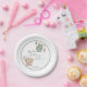 The colour palette of the plate is a dreamy blend of soft pastels, evoking feelings of tenderness and serenity. Hints of sage green, soothing, and gentle yellow add a touch of playfulness while maintaining an elegant and gender-neutral aesthetic.