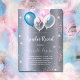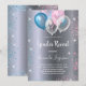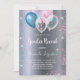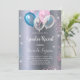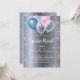 For a gender reveal baby shower. A faux silver metallic looking background. Decorated with glitter and blue, pink and white balloons and blue and pink faux glitter dust. Personalise and add the name of the mum to-be and party details. The name and the text: Gender Reveal are written with a hand lettered style script