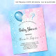 For a gender reveal baby shower, A blue and pink gradient background. Decorated with glitter and blue, pink and white balloons. Personalise and add the name of the mum to-be and party details. The name and the text: Baby Shower are written with a hand lettered style script
