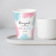 Watercolor elegant modern blue or pink, boy or girl, he or she, blue or pink gender reveal paper cup.