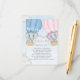 This whimsical gender reveal baby shower Books for Baby enclosure card features an adorable baby boy and girl elephants flying among the clouds in a blue and pink hot air balloons on a blue watercolor background. Easy to personalise with custom options by clicking the "Personalise" button.