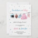 Front of a gender reveal invitation with a football, tutu, and ballet slippers on a clothesline. Text reads "Touchdown or Tutus?" in pastel colors.