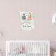 Gender reveal party baby shower boy or girl welcome sign with rustic vintage baby clothes on the tree branch, boho colours.