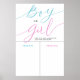 Here's a fun poster to have at your gender reveal party! Hand lettered typography script text says "Boy or Girl" at the top asking guests to cast their vote on what they think the baby's gender is going to be. Guests can vote for team boy or team girl. A fun game activity to do at your party.