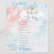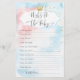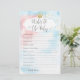 This baby shower game card features a script modern font on pink blue background, perfect for a your modern gender reveal party!