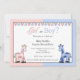 Girl or Boy? Find out at the gender reveal party and wear pink or blue to represent your guess! A fun twist on the traditional baby shower. The gender of the baby will be revealed at this celebration! Cute pink and blue design, with little giraffes and a striped border.