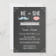 Gender Reveal Baby Shower invitation with moustache and lips design and chalkboard background.
