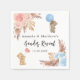 A white background. Decorated with rose gold, blush pink and blue florals, pampas grass. A teddy boy holding a blue balloon and a teddy girl holding a pink balloon. Personalise and add the parents names and the party date.