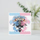 Make your gender reveal party super fun with this race car themed design! This design features the phrase "Burnouts or Bows" along with two car tires, one with pink and one with a blue rim. Each tire is surrounded by pink and blue smoke. Underneath is a black and white chequered flag design over two baby footprints, one pink and one blue. Continuing the gender reveal theme, a half blue and half pink bow is shown at the bottom on the chequered design. Adding to the race day motif, two chequered flags, one pink and one blue, decorate the sides while the top and bottom are bordered with a pink and blue chequerboard pattern. The back side of the invitation has all the details of your event with the same pink and blue chequerboard border and chequered flags. Get matching party supplies like cups, plates and napkins etc in my shop, RoomShiners! Pam