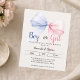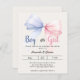 A soft ivory background, decorated with a large blue and pink bow. For a gender reveal. Personalize and add names and party details.