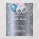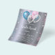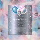 For a gender reveal baby shower. A faux silver metallic looking background. Decorated with glitter and blue, pink and white balloons and blue and pink faux glitter dust. Personalise and add the name of the mum to-be and party details. The name and the text: Gender Reveal are written with a hand lettered style script