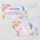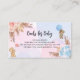 A book request, ticket insert for a baby shower. A watercolored pink and blue background. Decorated with rose gold, blush pink and blue florals, pampas grass. A teddy boy holding a blue balloon and a teddy girl holding a pink balloon. Send these enclosure cards out with the matching baby shower invitations