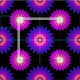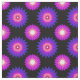 Fabric with a seamless modern geometric flower pattern in the colors of the genderfluidity pride flag; a pink, white, magenta, black, and purple genderfluidity pride design, a pattern on a black background
