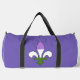 Duffle Bag with fleur-de-lis (fleur-de-lys or lily flower) symbol with rainbow stripes of purple, white and green from genderqueer flag; genderqueer pride design
