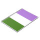 The genderqueer pride flag is a Marilyn Roxie design, aesthetically similar to the gay and lesbian, bisexual, transgender, asexual, and pansexual flags; that is, horizontal bars of colour with special meaning. The meaning of the colours in the genderqueer flag design are as follows: