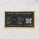 Promote your general contracting services with this industrial-style business card featuring bold gold accents and an integrated QR code for fast, scannable contact access. The rugged metal-inspired design pairs with clean, modern typography to highlight your name, license details, and core services. Perfect for builders, remodelers, subcontractors, and construction professionals, this print-ready card delivers a tough, professional look that stands out on job sites and during client meetings.
