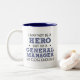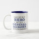 I may not be a hero, but I'm a General Manager so close enough humourous word art in sans-serif and doodle cross-hatch font lettering in black and dark blue.