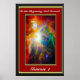 This christian vintage Genesis 1 In the beginning God created red and gold frame poster. Has a Colourful vibrant Christian vintage space design. With beautiful blue red yellow and orange colours. Looking like abstract space clouds. from a vintage photo from the 1900s.The Bible verse Genesis. 1 In the Beginning God Created.