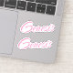 Genesis name in cursive script font in pretty pink x2. Two copies of name.