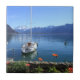 White sailing boat on Geneva lake at Montreux in front of Aravis Alps mountain by spring day, Switzerland