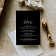Modern photo wedding enclosure card featuring a minimal design with white text over a black background in a combination of simple sans serif fonts and an elegant script. The back has your favourite photo. This chic enclosure card would be great for a goth themed or Halloween wedding.