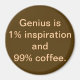 This magnet offers a unique take on an old quote. Keep your perspiration. I'll take coffee! If you agree with that sentiment, this is the magnet for you. The design features a coffee brown background with cream coloured writing, that says, "Genius is 1% inspiration and 99% coffee." GENIUS! If you can't see the wisdom in buying this magnet, you clearly haven't had enough coffee. Just keep chugging coffee until ordering this seems like a good idea!