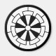 This KAMON is called 'Genji-guruma' in Japan. The Genji cart, or oxcart, also called gosho-guruma (cart for the Imperial Palace), was often symbolised by depicting only the wheel of the cart. After the Fujiwara period, the wheel was depicted in decorative patterns and later used as family cress.