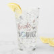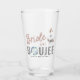 This glass features rose gold font and silver glitter text with poppin' champagne bottles, diamonds, and the saying "bride and boujee". This pint glass is the perfect gift for a bachelorette weekend.