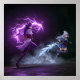 Witness the breathtaking clash of Raiden Shogun's electrifying power and Ayaka's glacial grace. This stunning artwork captures the dynamic dance between light and shadow, a vibrant reminder of life's contrasting forces. Bring the energy of Teyvat to your space!