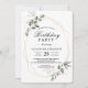 Celebrate in style with this elegant birthday party invitation, beautifully designed with watercolor eucalyptus greenery and a gold geometric frame. This minimalist yet classy invitation is perfect for adult birthdays, milestone celebrations, or elegant garden parties. Customize it with the name, date, location, and RSVP details to suit any occasion.
