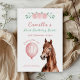 Celebrate your little one’s milestone with this lovely horse design! A beautiful horse with a pink balloon featuring the number "1", surrounded by soft flowers in gentle pastel hues, makes this invitation perfect for a first birthday party. Add your child’s name and event details to create a sweet keepsake. It’s a charming way to invite guests to a day of joy and celebration!