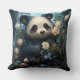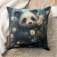 Gentle Panda Bear Among Jungle Roses Cushion
