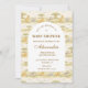 A sweet storybook-style safari design featuring gentle watercolor baby animals including lions, giraffes, and elephants surrounded by soft jungle greenery and a delicate botanical background. The warm neutral palette of cream, honey gold, and soft olive creates a timeless nature-inspired aesthetic, while the elegant arched layout provides a beautiful space for event details.
