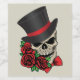 Gentleman skull is dressed in his finest top hat with red bow tie and red roses.