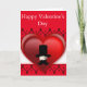 This is a truly non mushy, masculine card, it features a design incorporating top hat moustache and monocle, against a red heart and red patterned background. The text is editable. Perfect for the man in your life.