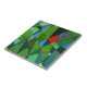 These ceramic tiles feature art selected from the work of my wife Carolyn. They are adapted from her original abstract paintings, drawings and prints. I hope you find something that speaks to your heart. This painting is a free form in cool greens and blues with a hot red accent.