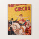 Gentry Bros. circus Miss Louise Hilton, the greatest rider the world has ever known. Circus poster showing Louise Hilton perched on a white horse, about to leap over a scarf held by a clown and a ringmaster.