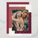 A modern and eyecatching holiday photo card design featuring a vertical or portrait-orientated photo framed by overlapping blocks of baked apple and cranberry red, and overlaid with gold foil diamond shapes for a chic geometric colorblock look. Personalise with your custom holiday greeting (shown with "Merriest Christmas,"), your family name, and the year.