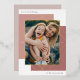 A modern and eyecatching holiday photo card design featuring a vertical or portrait-orientated photo framed by overlapping blocks of pink clay and spice, and overlaid with gold foil diamond shapes for a chic geometric colorblock look. Personalise with your custom holiday greeting (shown with "Merriest Christmas,"), your family name, and the year.