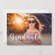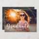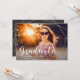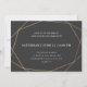Faux gold foil geometric frame borders and highlights your photo with optional party info on the reverse.