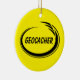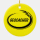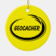 Geocacher text with an black oval splash is a unique geocaching gift design for cachers at birthdays, holidays and geocaching events.
