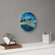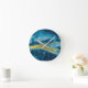 The clock did not take as long to arrive as I thought it might and was extremely well packaged. I didn't do the measurements so I didn't realize it is a little smaller than the average clock but that does not matter (just make sure you check if that's important to you).It is really nifty! It seems very solid and well made not flimsy at all. It has been going well and has kept good time in its few weeks on my wall. Nice product. Gets noticed too! Nicer in real life than the picture but true to the picture