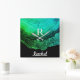 Geode Agate Monogram Initials Name Template Green Square Wall Clock