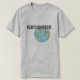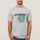 GeoDude - geoscience t-shirt with distressed lettering, crossed rock hammers and illustration of Earth.