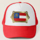 The design printed on this hat features the Georgian flag surrounded by a metallic looking frame.