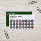 A business card template with an attractive ordered arrangement of circular spots or buttons with a 3d bevel and drop shadow effect, each with an each with a different rock texture (all different). Company details on the front with name and contact details on the back in white on a dark green background. The colours can also be further customised. Suitable for many types of business though particular appropriate for Geology related businesses mining, drilling, etc