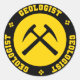 Yellow and black sticker with crossed rock hammers surrounded by "GEOLOGIST" in collegiate style lettering.